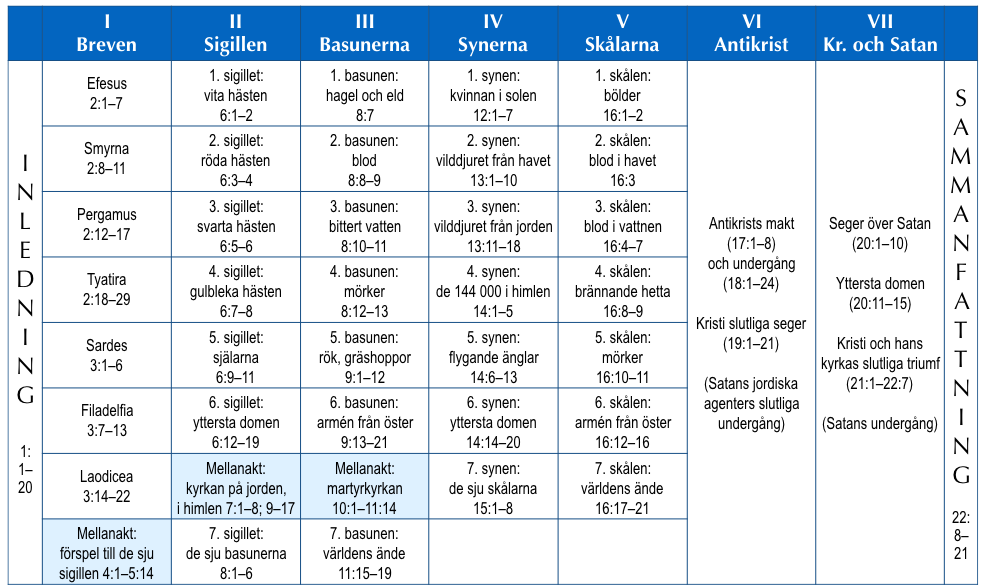 Predikotext: Upp 20:11-21:1. För avsnittets inplacering i Uppenbarelsebokens helhetsmönster se diagram (klicka för full storlek):